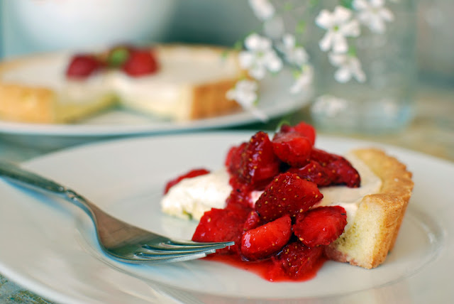 To serve, the tart is lovingly adorned with a heaping spoonful of strawberries drunk on their own sweet juices. I suggest you schedule a rendezvous with this dessert - just make sure ricotta doesn't find out.
